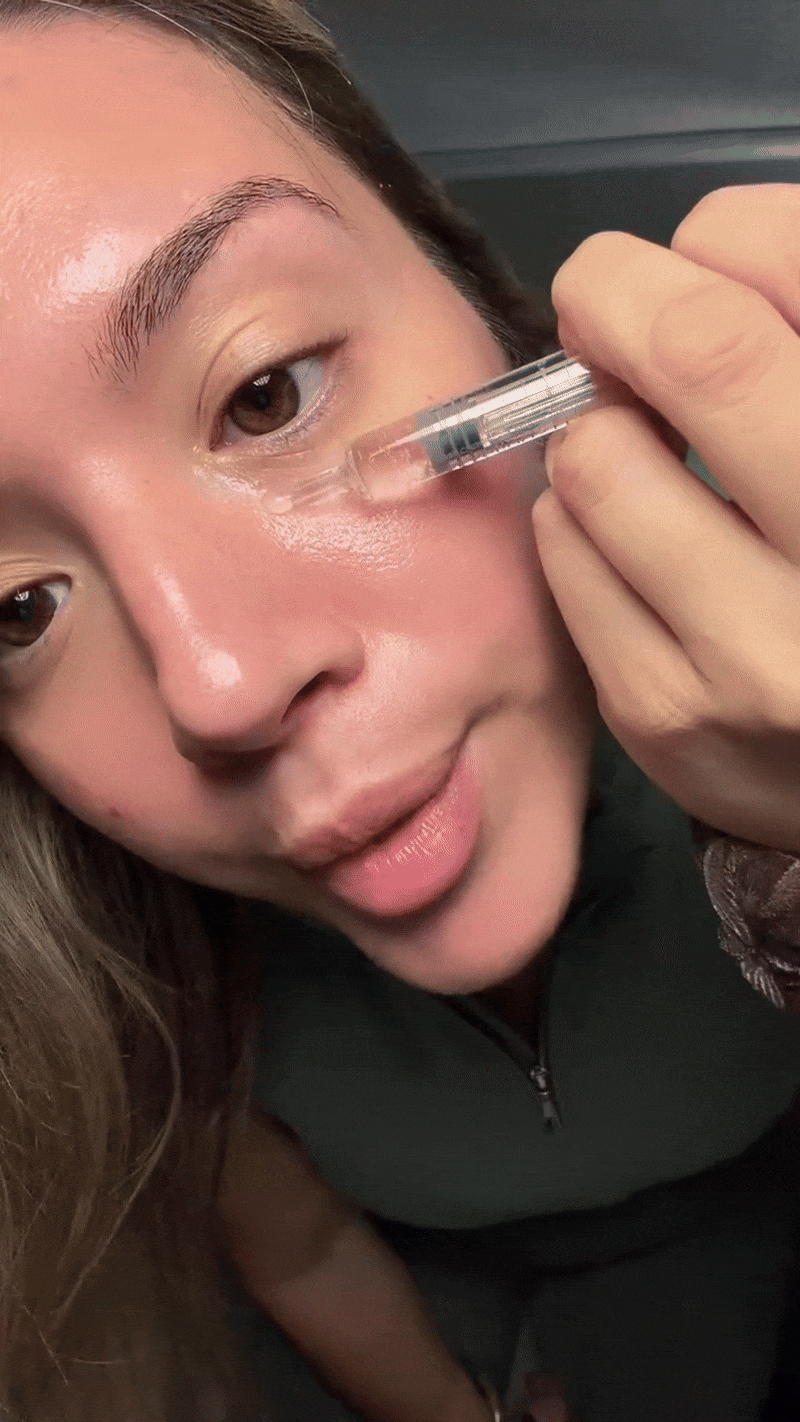 Apply 2–3 Drops: Dispense a small amount and gently press into areas that need lifting or smoothing (cheeks, jawline, forehead, smile lines).